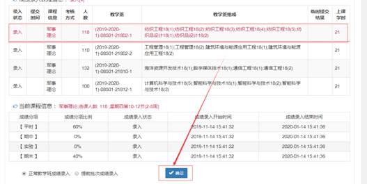 2、选中录入成绩的课程信息,点确定。