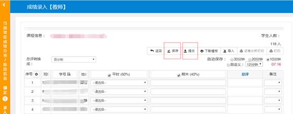 6、及时保存成绩,确认成绩无误后,点击提交按钮,提交后无法再修改。