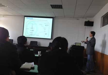 2014年3月21日上午10点,美国加州大学河滨分校李盛本博士受公司生物信息学学科组邀请来访讲学,并在6号楼309会议室为师生做了题为“Arabidopsis miRNAs Inhibit translation on the Endoplasmic Reticulum”的学术报告。报告由金伟波副教授主持,相关学科组老师和员工听取了报告。