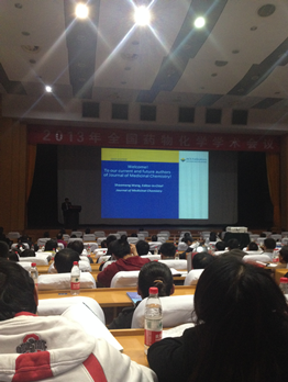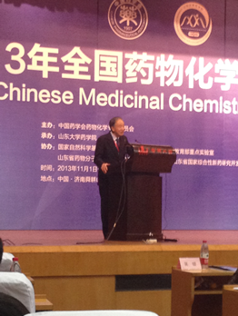 2013年11月1至3日,“2013年全国药物化学学术会议暨第四届中英药物化学学术会议”在山东省会城市济南舜耕山庄隆重召开,公司生物制药学学科教师金甲和生物信息学学科教师叶飞参加了会议。本次学术会议由 “中国药学会药物化学专业委员会”和“英国皇家化学会”联合主办,山东大学药公司承办。公司与会教师与专家学者们就药物化学与创新药物发现及相关学科领域的新成就进行了广泛、深入的交流。