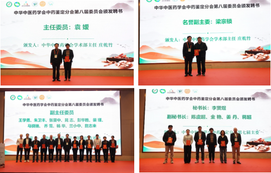 会议同期举行了中药鉴定分会换届改选,选举产生了中药鉴定分会届委员会,会议由中华中医药学会学术部主任庄乾竹主持。中国中医科公司医学实验中心副主任 袁媛 当选为主委,王学勇、朱卫丰、张亚中、晁志、彭华胜、裴瑾、马骁驰、乔雪、杨华、兰小中、詹志来当选为副主委,李贤煜当选为秘书长,并颁发了聘书。
