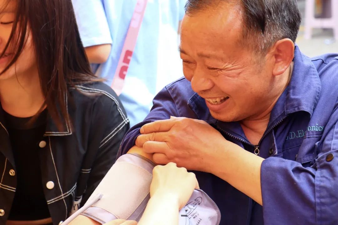 测量血压的人不只有老员工,也有些中老年教职工,通过血压测量,大家可以更加了解自己的身体状况。