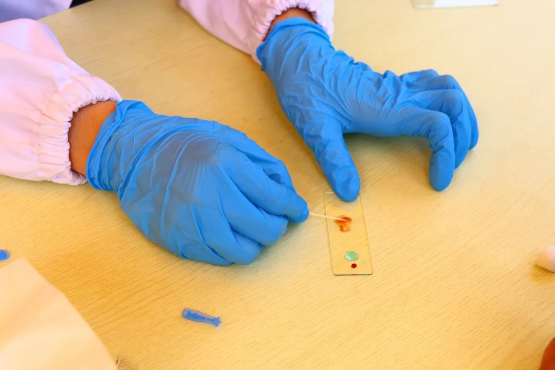 活动开始后,师生们便展示出浓厚的兴趣,有序排队,踊跃参与。工作人员有条不紊地进行采血、鉴定,同时进行简洁明了的讲解,并在成功得出鉴定结果后为参与者送上一张精美的“血型鉴定证书”。