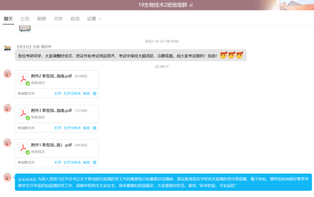 班会上,班长向每一位宣传疫情防控有关政策规定和疫情防控动态,组织学习新冠病毒防治措施和就诊流程,学习抗疫精神和疫情防控警示案例,引导员工增强防疫意识,加强心理疏导,做好个人防护,返校全程佩戴口罩。同学们提高了警惕心,正确认识了当前的疫情形势以及做好防护的必要性。