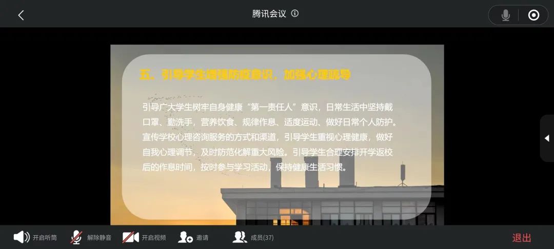 为深入贯彻习近平总书记关于新冠肺炎疫情防控工作的重要指示和重要讲话精神,落实教育部及公司有关疫情防控决策部署,毫不放松、慎终如始地做好春季学期员工开学返校和疫情防控工作,保障公司师生生命安全、身体健康和校园稳定,必一运动组织各班级积极开展“科学防疫,平安返校”的线上主题班会,宣传国家疫情政策,学习应对疫情的方法,掌握公司关于春季开学的疫情防控政策和返校流程,为开学工作的有序进行奠定基础。