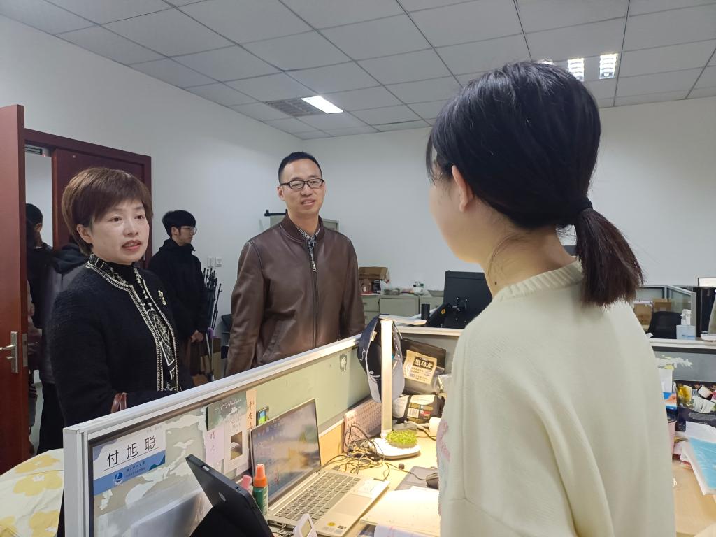 在研究院副经理陈剑清陪同下,楼玉兰一行走进实验室、办公室、员工休息室等场所,看望联培员工,详细询问了解同学们学习、科研与生活情况,鼓励同学们志存高远、脚踏实地,充分利用研究院优越的科研条件,高质量完成研究生学业,努力成长为高层次创新型人才。