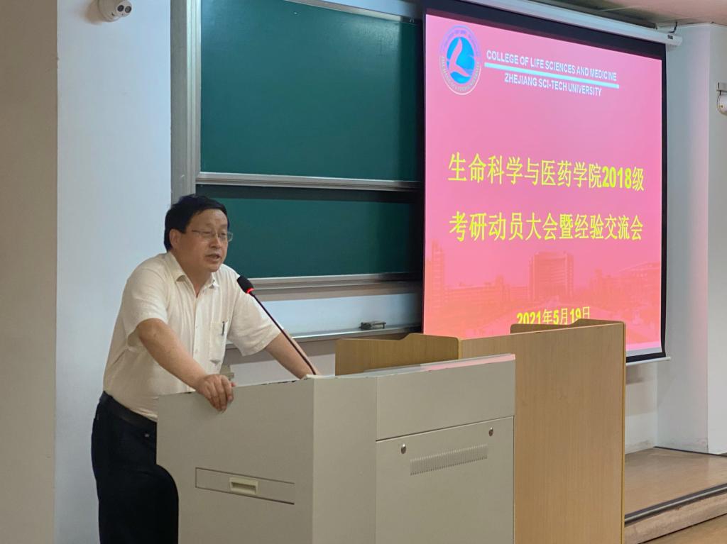 吕正兵作了“如何正确对待研究生报考”为主题的讲话,他首先阐述“我们毕业后与谁竞争”、“怎么才能有实力”两个问题,以此来鼓励同学们报考硕士研究生。其次,就如何准备考研给出了六点建议:一是先要明确方向;二是要根据英语水平选择报考高校;三是搜集可能的报考高校及专业考试题型和要求;四是若未确定考研院校,可先了解考研方向核心考试课程,并先复习备考;五是若未确定考研院校和专业方向,可先学习英语、政治和生物大类核心考试课程生物化学;六是合理安排政治学习的时间和方法。