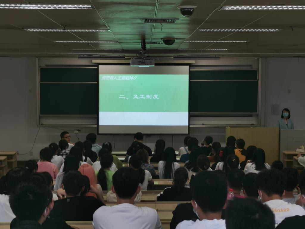 王瑶瑶向同学们详细介绍了卓越人才培养基地自强班以及员工互助学习中心。自强班学员可以参与到出国境交流专项资助、个性化的生涯规划服务和职业探索指导等。品学兼优的同学可以参与到员工互助学习中心,开展对其他同学帮、扶、带作用,形成“自助、互助、团结、奋进”的学习氛围。