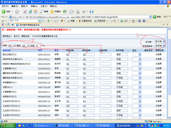 1. 选择成绩录入记分制(见下图中Ⅰ):根据课程选择记分制,同一课程采用同一记分制;