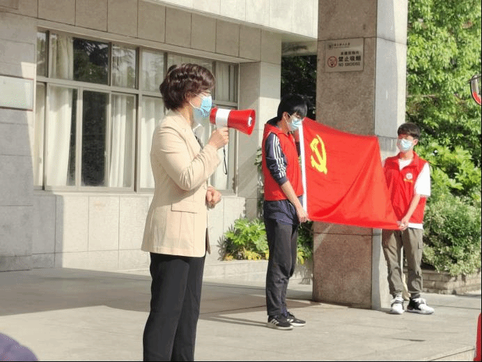 宣誓后,丁春平作动员讲话。她对志愿者高度的责任感、饱满的热情给予高度肯定。她提出,大家要提高站位,充分认识疫情防控形势的严峻性,把疫情防控工作作为当前最重要的政治任务,党员要争当疫情防控的“排头兵”,党支部要争做疫情防控的“桥头堡”,让党旗在抗疫一线高高飘扬。