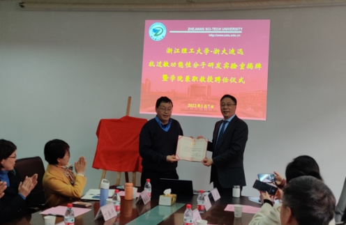 仪式上,梁宗锁为吴善东颁发公司兼职教授聘书。海洋系系主任韩兵男教授与吴善东共同为B-Sports-浙大迪迅抗过敏功能性分子研发实验室揭牌,相关领导嘉宾鉴证。