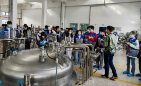华东医药股份有限公司成立于1993年。公司业务覆盖医药全产业链,以医药工业为主导,同时拓展医药商业和医美产业,已发展成为一家集医药研发、生产、经销为一体的大型综合性医药上市公司。同学们走进了公司百令胶囊生产车间,近距离探访和感受了冬虫夏草中华被毛孢如何通过现代化的发酵工艺生产百令胶囊的工艺流程,领略了现代真菌深层发酵技术。