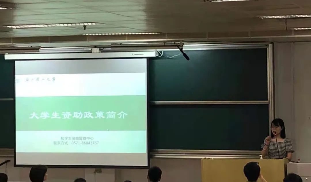 王瑶瑶作“奖贷勤助补减”六位一体资助政策宣讲,系统的讲解了奖学金、助学金、助学贷款、勤工助学、临时补助、学费减免等资助政策,并将申请的条件与同学们作了强调。勉励员工资助对象好好学习,争取获得更多的奖助学金,用来解决学费和生活费的问题,追梦路上,浙理资助与你同行。