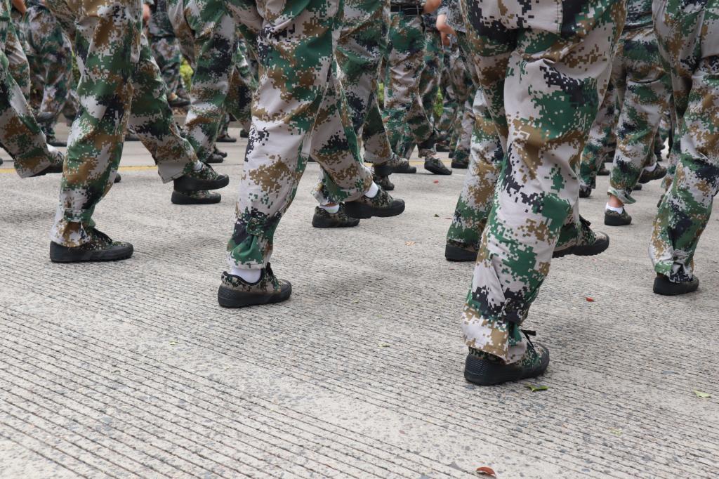 身着迷彩服的昂扬少年们,摆着整齐的步伐,正绷直双腿,高扬手臂,迈着有力的步伐一步一步地重复着正步的训练,少年的激情正与烈日的炎热相碰撞,他们在军训的考验中快速成长。
