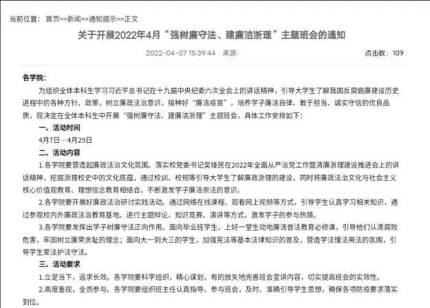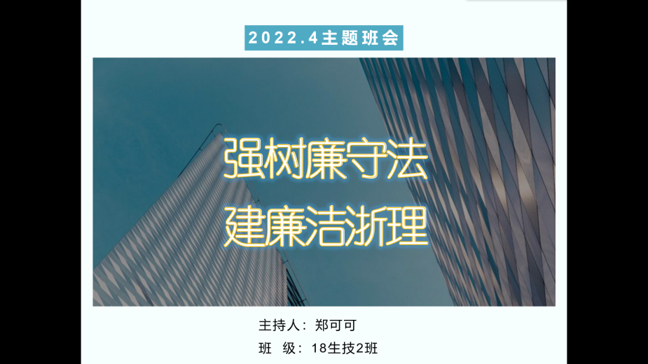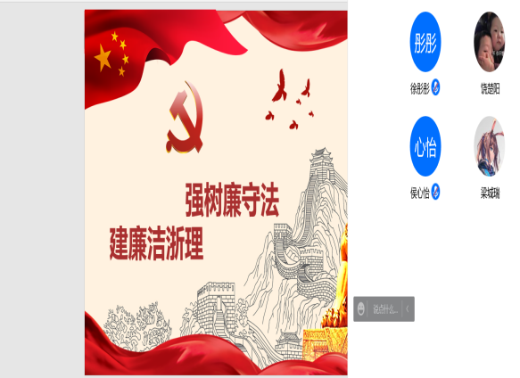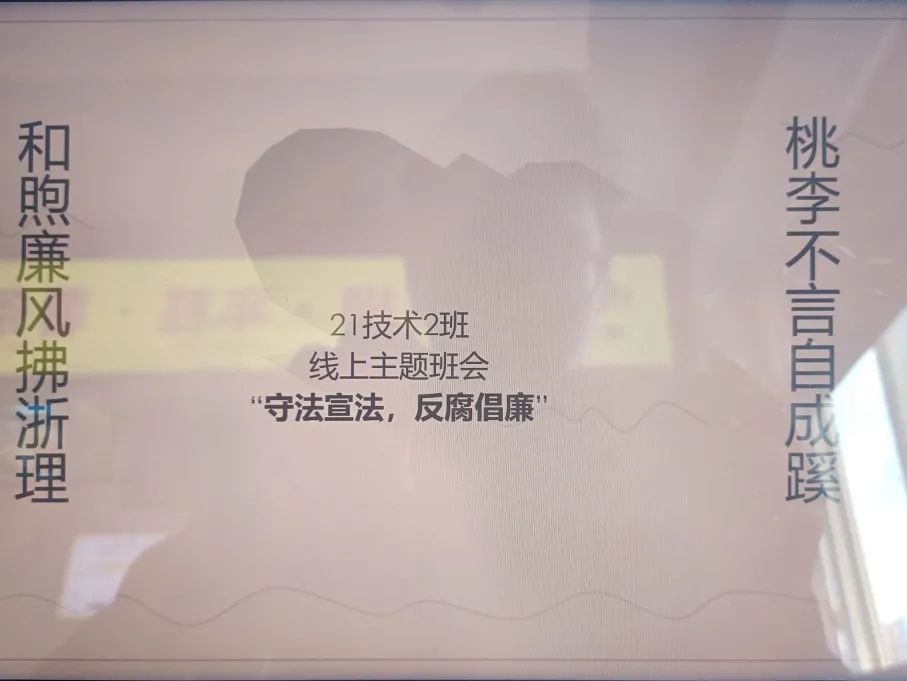 20级各班的班长和团支书组织开展“强树廉守法,建廉守浙理”线下线上主题班会,依靠各种多媒体途径充分传播守法廉洁精神,结合当代时事政治,让同学们学习法律知识,将加强守法意识。大家深刻了解到法律和廉洁的重要性,并在生活中坚守。
