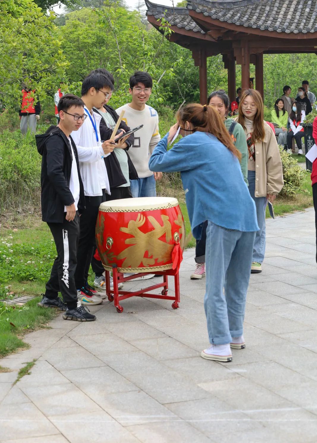 同学们以队伍形式共同完成任务,通过“打卡”+“游戏”双线任务活动形式进行。同学们完成五个发布的打卡任务,以拍照或录像的方式记录,完成后全队到达出发点进行核验,即为挑战成功。活动现场一堆有趣的队伍名字出现在参赛名单中,如“强人锁男” 、“啊对对队”、“如来佛祖”、“快饿死辣”等,为本次活动增添了几分乐趣。同学们拿着发布的任务奔跑在校园中,在各处或摆拍或搞怪,留下了许多有趣照片。他们飞奔着,不知不觉汗珠沁上脸颊,在完成任务的同时锻炼了身体。