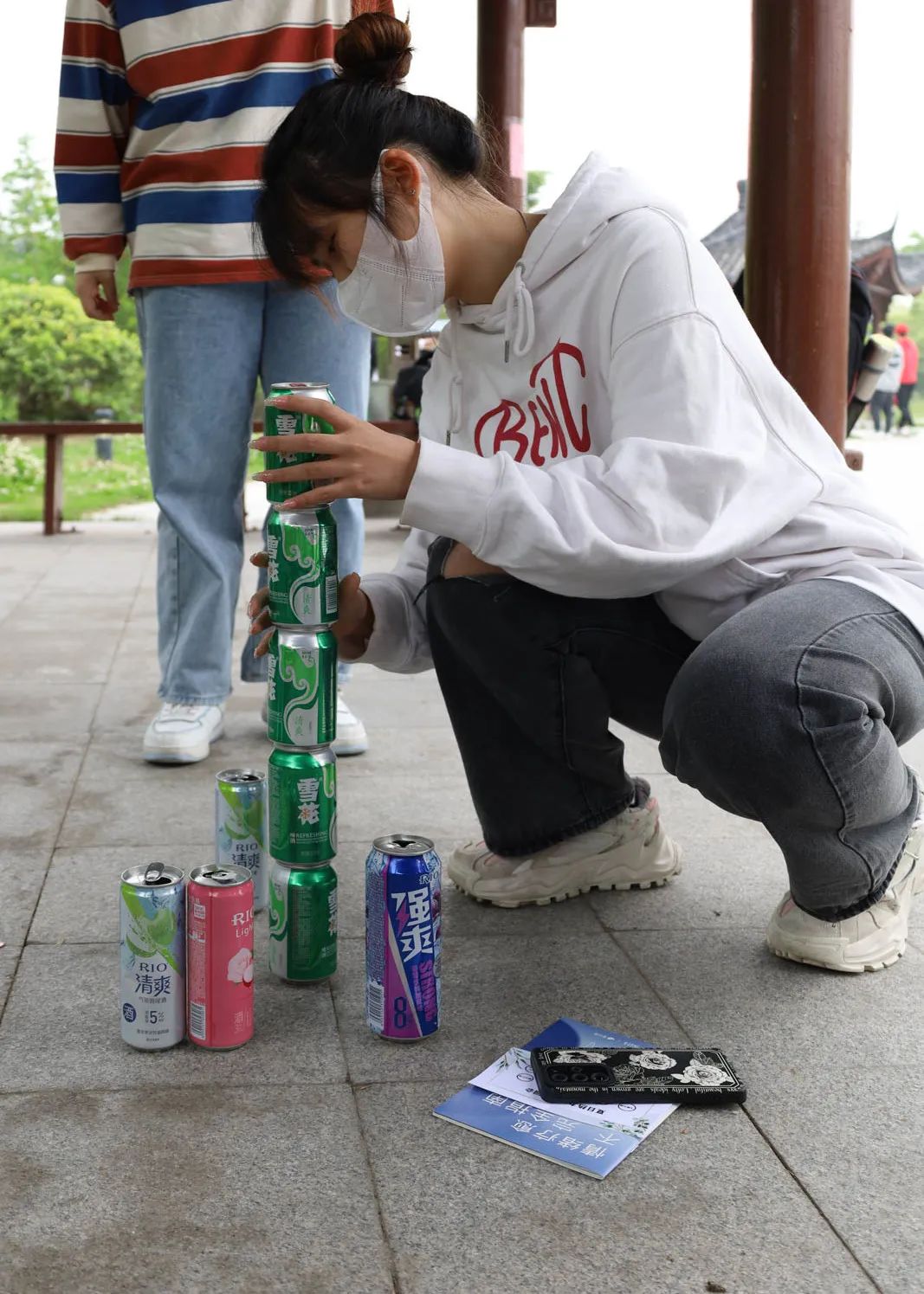 首先是上午的游园会。活动包括了飞镖大师、海底捞月、金玉满筐等十个游戏项目。例如在掌上明珠的游戏过程中,参与者在游戏过程中易受风的影响,每迈出一小步都要屏气凝神,生怕不留神就让乒乓球落了地。而瞎子打鼓的游戏则要求参与者蒙上眼睛,原地旋转七圈后找准方向击打鼓。闭上眼睛后,大家的方向感就会受到影响,因此在游戏过程中,每个人几乎都是步履艰难,走的路线也五花八门。丰富多彩的游戏项目给同学们带来了无限的欢乐,可以说每个摊位前都人满为患,一波接着一波。