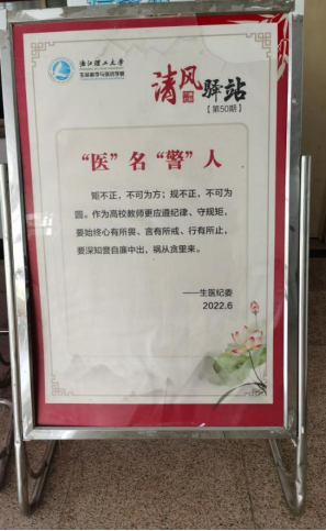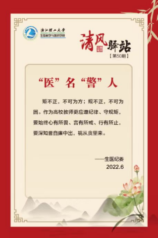 “清风驿站•‘医’名‘警’人”是公司持续推进的品牌建设项目,公司纪委对“清风驿站•‘医’名‘警’人”进行了升级改版。每月由纪委委员编写的廉政警示信息由原来的线上提醒升级为线上线下同步实行。线上由原来的发布短信改为通过公司官微进行推送,推送链接实时在公司钉钉群、微信办公群共享;线下采取滚动电子屏播放和海报张贴进行宣传,进一步营造风清气正的公司文化氛围。目前“清风驿站•‘医’名‘警’人”已发布50期整。