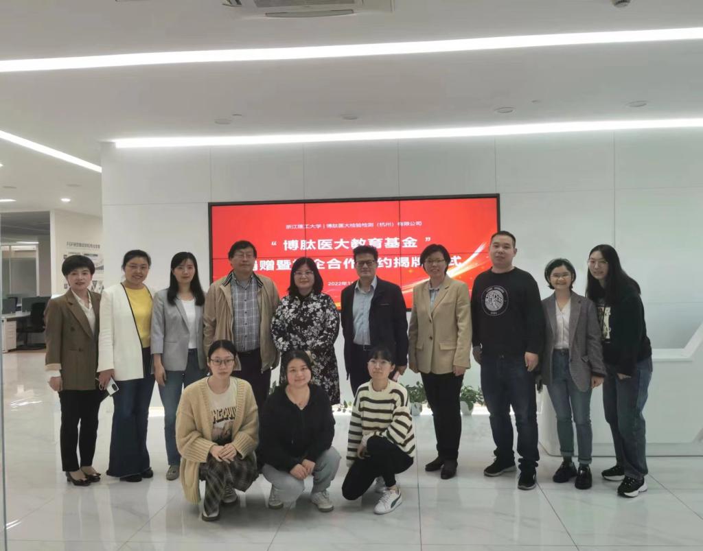 11月2日上午,“博肽医大教育基金”捐赠暨校企合作签约揭牌仪式在博肽医大检验检测(杭州)有限公司举行,为公司办学125周年献上厚礼。公司党委副书记陶伟华,博肽医大检验检测(杭州)有限公司总经理殷才出席活动。
