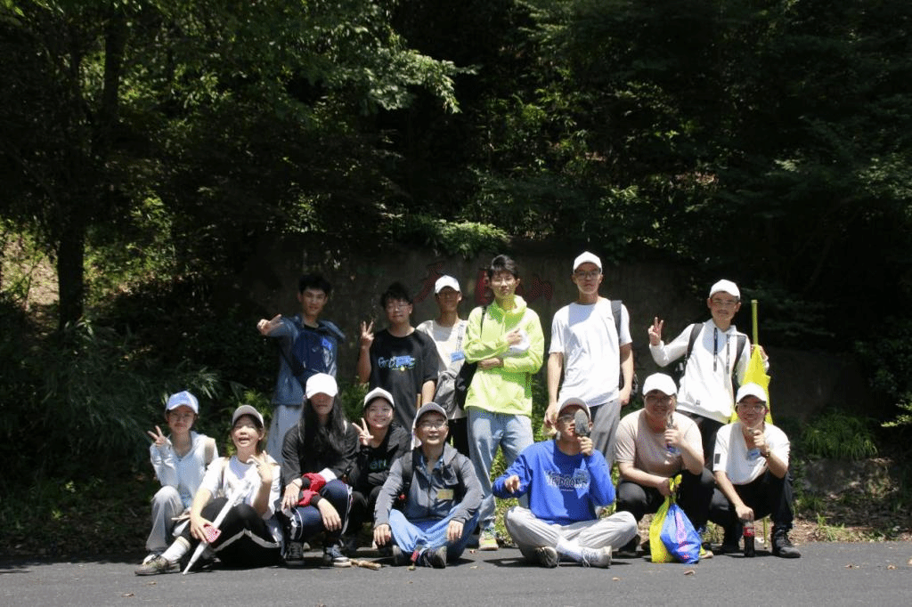 还有一组是生态学实习,带队教师姜永厚带着大家进入山中,找一片合适的地段,圈起10m×10m的格子让同学们了解天目山群落多样性。大家几个人一个小组,利用样方法进行生物多样性调查分析,这期间同学们养成的科学严谨的态度,想必会让以后的实验水平以及做事态度都能得到极大提升。