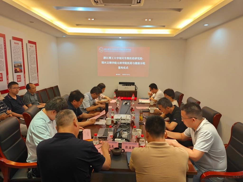 为充分发挥党建引领高质量发展作用,推动校地党建“全区域建强、全领域过硬、全方位融合”的“校地融合型”党建试点。2023年7月27日下午,必一运动绍兴研究公司党支部与绍兴文理公司元培公司医药与健康分公司党总支举行了校企党建共同体签约仪式。这标志着双方在长时间友好合作的基础上,结成了优势互补、强强联合的战略合作伙伴。绍兴文理公司元培公司经理沈红卫,医药与健康分公司党总支书记金超、经理周瑾、副经理罗超和相关负责人,以及公司经理、绍兴生物医药研究院经理梁宗锁、绍兴生物医药研究副经理舒建洪和陈剑清、各中心主任出席签约仪式,会议由党支部副书记俞梅兰主持。