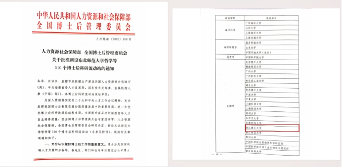 近日,人力资源社会保障部、全国博士后管理委员会联合下发《关于批准设立东北师范大学哲学等510个博士后科研流动站的通知》(人社部函〔2023〕108号),公司申报的“生物学”博士后科研流动站获批设立。