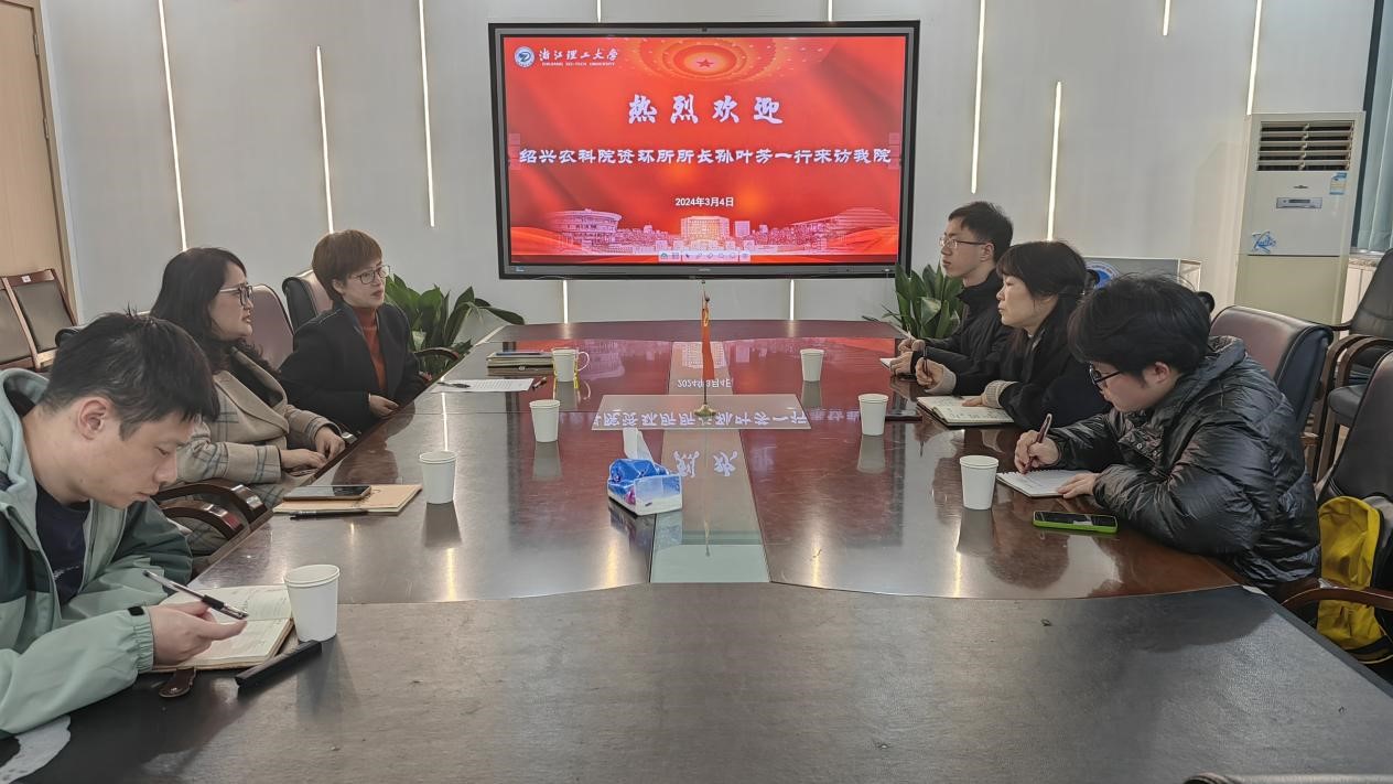 3月4日上午,绍兴农业科学研究院资源与环境研究所所长孙叶芳一行3人来访公司。公司党委书记王晓军、党委副书记楼玉兰、微生物学科方向胡秀芳教授、李欧副教授参加了座谈。