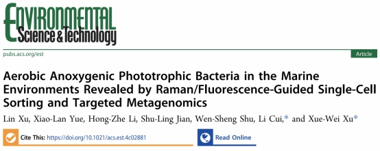 (2)徐林副教授Environmental Science & Technology:建立好氧不产氧光合细菌的单细胞拉曼光谱识别方法