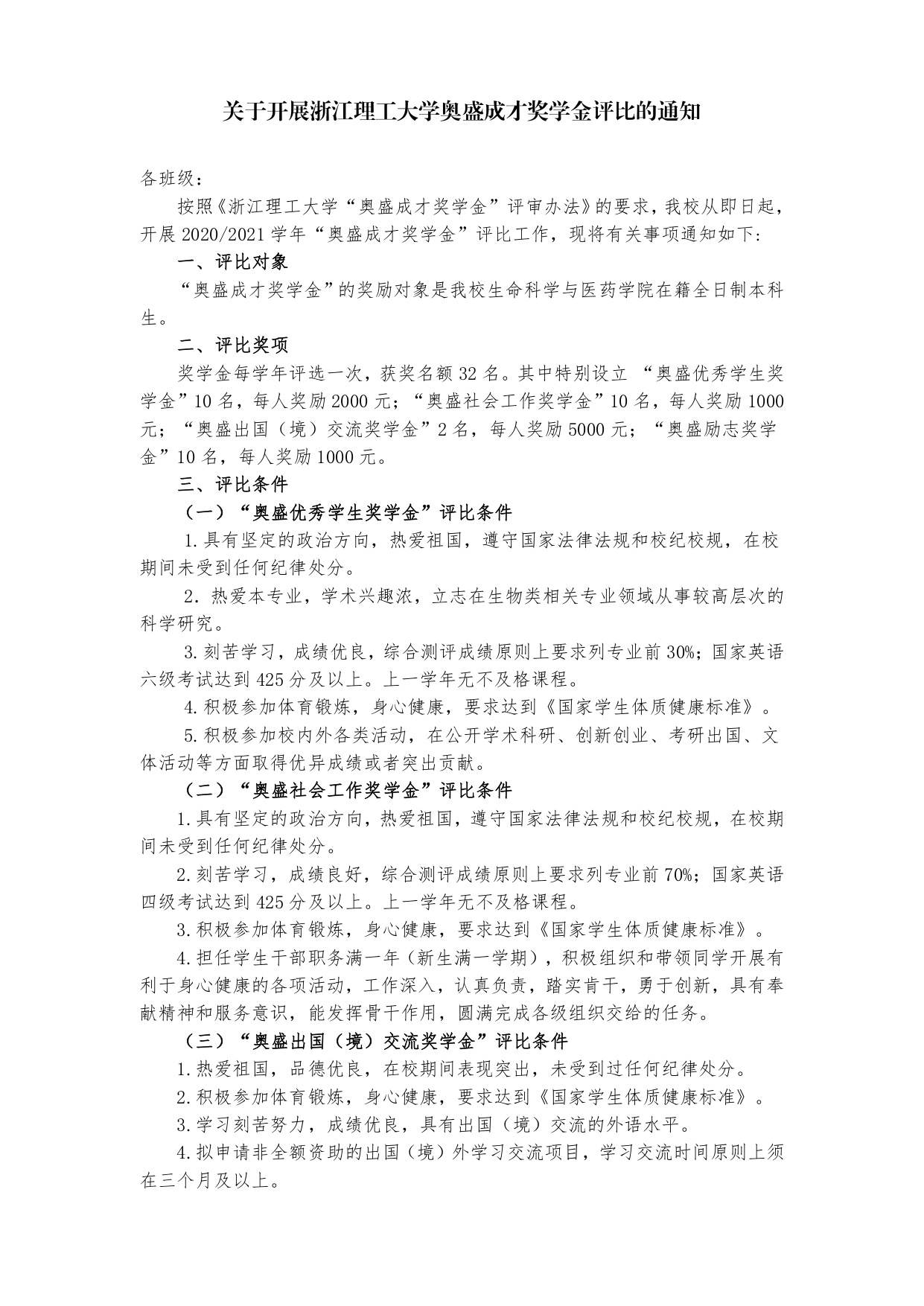 关于开展B-Sports奥盛成才奖学金评比的通知