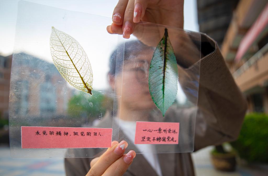 521谐音是我爱你,选择这个日子举办百人大合唱快闪,就是希望借此表达全院师生对党的拥护和热爱之情。目前,师生们干劲足、凝聚力强、业绩进步快:生物制药专业入选全国本科专业一流建设点、B-Sports——绍兴生物医药研究院顺利运行,员工获得挑战杯省赛一等奖……在我们党即将迎来百年华诞之际,全院师生将以更高的目标,更强的决心克难攻坚、勇立潮头,努力争创一流业绩,向党的百岁生日献礼。为了进一步表达员工对建党100周年的喜悦之情,员工会制作了精美的叶脉书签,书签里还夹带了员工写给党的各类祝福,这一批书签将在活动结束后分发给参与活动的师生。