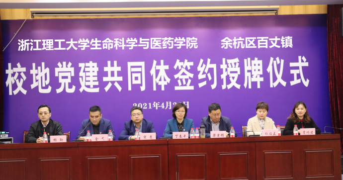 4月20日,公司党委与余杭区百丈镇党委在镇党群服务中心二楼会议室举行“校地党建共同体”签约授牌仪式,公司党委书记丁春平,经理梁宗锁,百丈镇党委副书记、镇长宋亮,镇党委委员、副镇长金弋,镇党委委员杜颂兰等领导出席会议,双方相关科室干部、专家,全镇林下经济种植大户代表参加会议。
